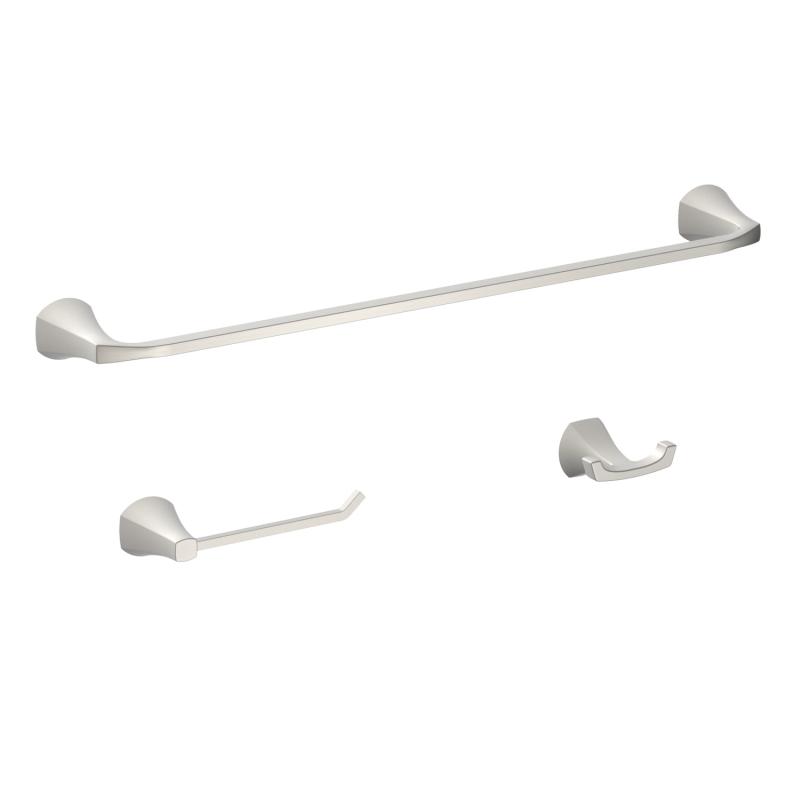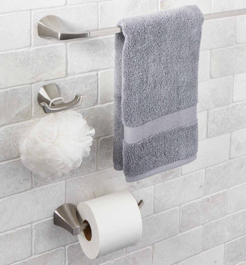Better Homes & Gardens Simple Flare 3 Pieces Bath Hardware Set in Satin Nickel Towel Bar, Toilet Paper Holder, Robe Hook Included, Wall Mounted