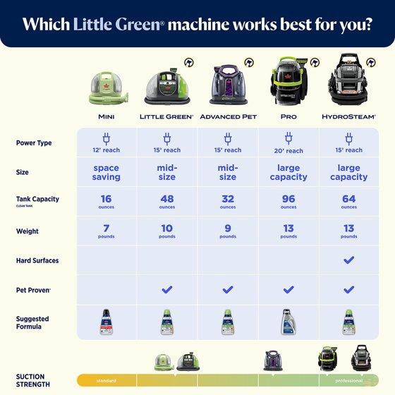 Meet BISSELL® Little Green® HydroSteam® portable deep cleaner, designed to clean messes up to 50% better with HydroSteam® Technology. With 3 different cleaning modes, you can tackle everything — from spills on carpet to refreshing curtains and upholstery — as well as remove stubborn spots and stains with the help of BISSELL® ADVANCED PRO OXY Spot & Stain Formula with StainProtect® Technology. And this machine doesn’t just clean up after pets, it helps save them! Every purchase makes it possible for BISSELL to continue our support of BISSELL Pet Foundation® and its mission of saving pets in need. Since 2011, BISSELL has donated over $26 million in support of BISSELL Pet Foundation®. When you purchase a BISSELL® product, you help save pets, too. Our products are engineered to clean even the toughest messes so pets can stay at home and out of shelters.