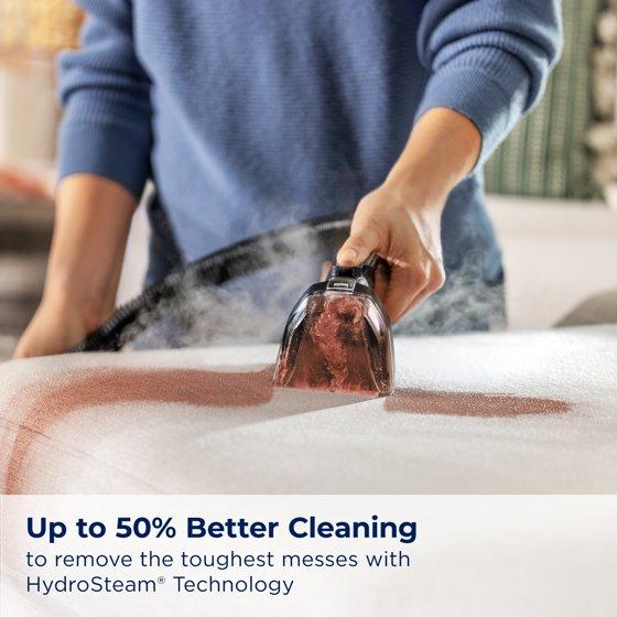- UP TO 50% BETTER CLEANING WITH HYDROSTEAM® TECHNOLOGY. Steam, powerful suction and OXY formula remove set-in stains and stuck-on, oily messes from carpet, upholstery and other surfaces.
