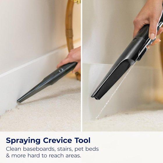 - Above Floor Cleaning for Hard to Reach Areas. Clean baseboards, stairs, upholstery, pet beds and more with the 3" Tough Stain Tool & Spraying Crevice Tool.