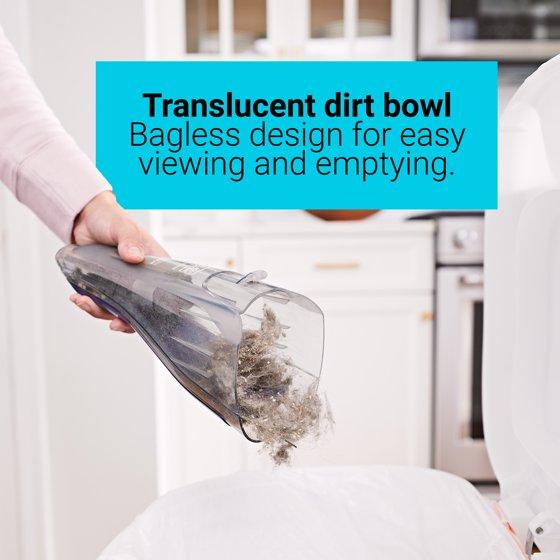 - Clear Bagless Dirt Bowl is easy to see dirt and easy to empty