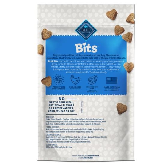 - Contains: One (1) 11-oz bag of BLUE Bits Natural Soft-Moist Training Dog Treats, Chicken Recipe