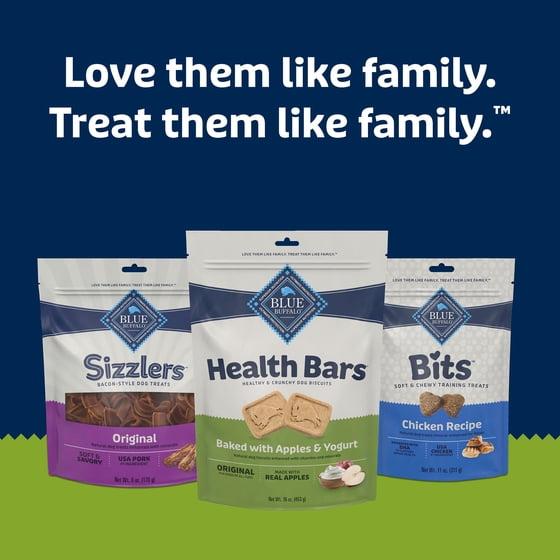 - MADE with APPLES: BLUE Health Bars dog treats prove that a healthy treat can be tasty, too; with ingredients like oatmeal, apples, and yogurt, these bars feature the ingredients you’ll be proud to feed your furry family members