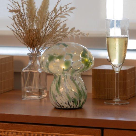 BrightSide Mushroom Confetti Glass Lamp - Sage/White, Battery-Powered Fairy Lights