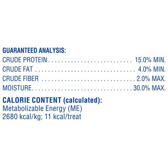 Wheat Flour, Soy Flour, Water, Beef, Glycerin, Whole Ground Corn, Sugar, Bacon, Corn Syrup, Natural Smoke Flavor, Bone Phosphate, Salt, Potassium Sorbate (Used As A Preservative), Phosphoric Acid, Red 40 Lake, Glyceryl Monostearate, Yellow 6 Lake, Titanium Dioxide (Color), Bha (Used As A Preservative), Yellow 5 Lake, Blue 1 Lake