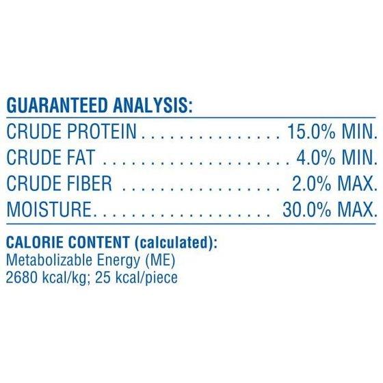 Wheat Flour, Beef, Soy Flour, Corn Syrup, Water, Propylene Glycol, Dried Cheese, Liver, Chicken By-product Meal, Animal Fat (bha/bht Used As A Preservative), Calcium Sulfate, Potassium Chloride, Salt, Phosphoric Acid, Vegetable Oil (mixed Tocopherols Used As A Preservative), Titanium Dioxide (color), Garlic Powder, Sorbic Acid (used As A Preservative), Yellow 5 Lake, Potassium Sorbate (used As A Preservative), Yellow 6 Lake, Red 40 Lake, Bha (used As A Preservative), Lactic Acid, Natural Smoke Flavor, Caramel Color, Citric Acid (used As A Preservative).