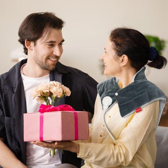 - 19"x22" Size: Oversized electric heating pad with a curved high collar is 19"x22" in size, fully covering your neck, shoulders, and upper back to effectively relieve muscle aches, stiffness, tightness, muscle spasms, and chronic pain.