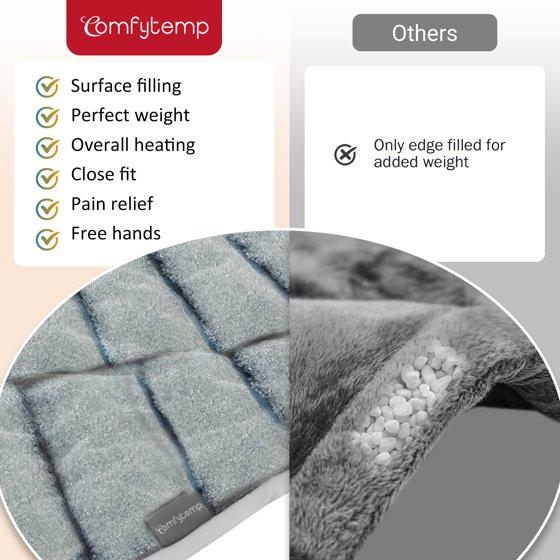 Comfytemp 2.6lb weighted heating pad for neck and shoulders coming with 9 heating settings and 11 auto-off timers. This large neck and shoulder heating pad meets your daily therapy temperature needs, allowing you to customize the desired temperature for heat therapy. Besides, This gray electric heating pad features stay-on function, which provides constant heat to meet your needs for continuous pain. With 19 x 22" large size, it fully covers your neck, shoulders, and upper back, and also can easily moved on other body parts, help you get a better heat therapy, offer targeted and more humanized relief. Besides, the Comfytemp heating pad is soft enough because of the flannel material, which helps the heat spread heat evenly and provides maximum comfort for your entire body.