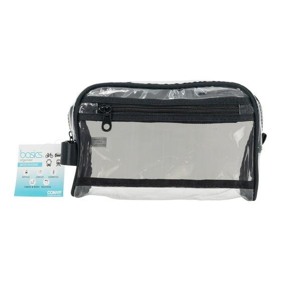 Conair Basics Clear Travel Organizer Bag with Side Pocket and Handle, Black