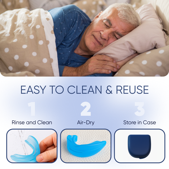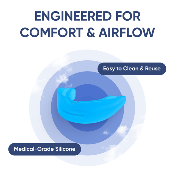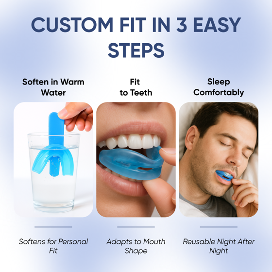 - Customizable, one-size-fits-all design for both men and women that allows for free jaw movement and comfort while sleeping.