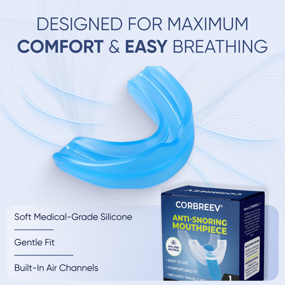 CorBreev Anti-Snoring Devices, Universal Snore Stopping Mouth Guard for a Quiet Nights Sleep, with Travel Case