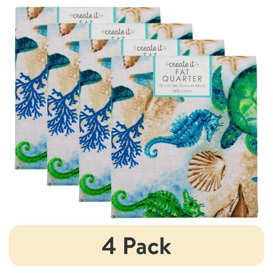(4 pack) Create It 18"x21" 100% Cotton Turtle Precut Sewing & Craft Fabric, Blue 1 Piece