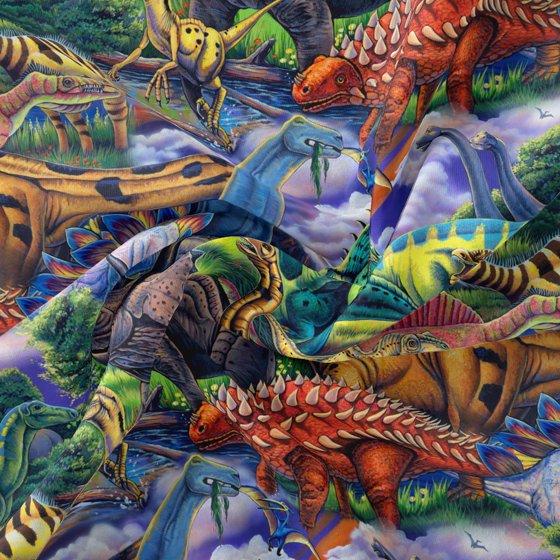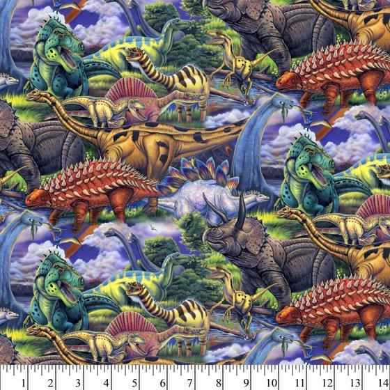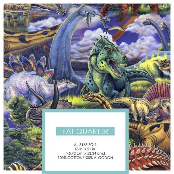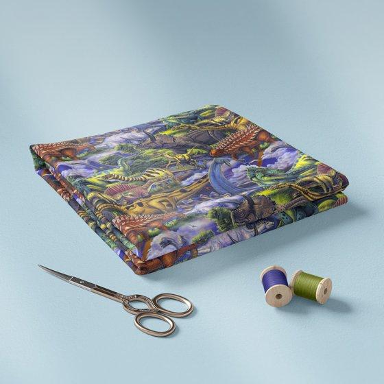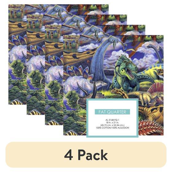 (4 pack) David Textiles 21" x 18" 100% Cotton Dinosaurs Precut Sewing & Craft Fabric, Multi-color