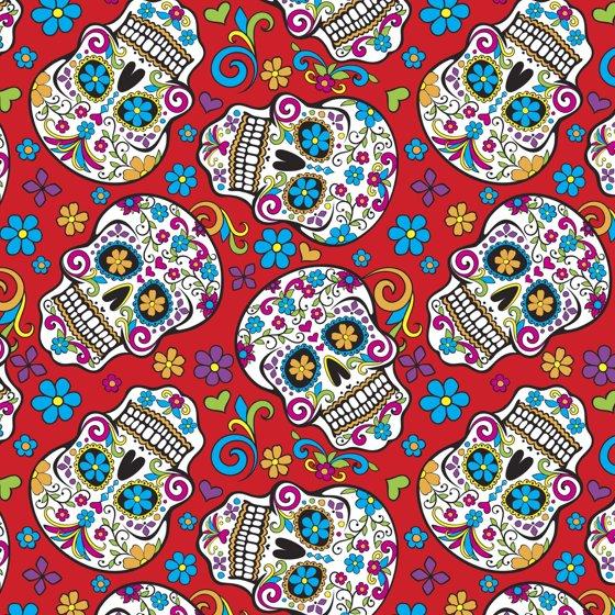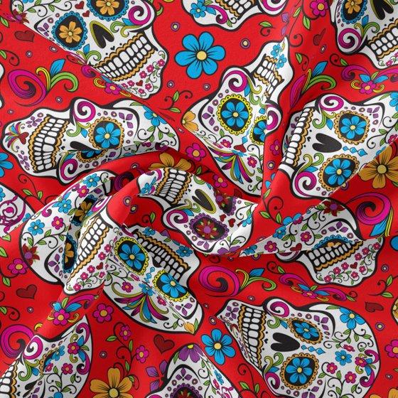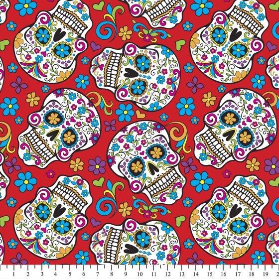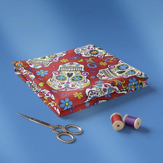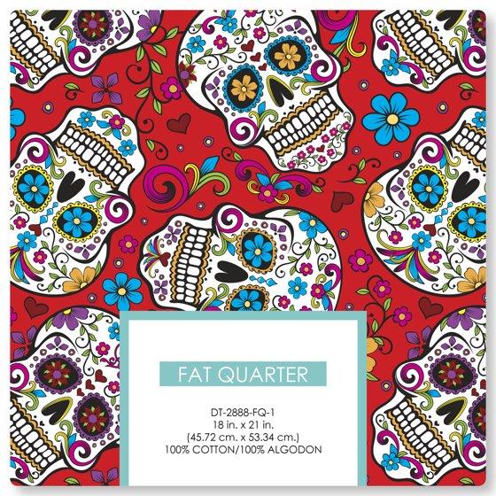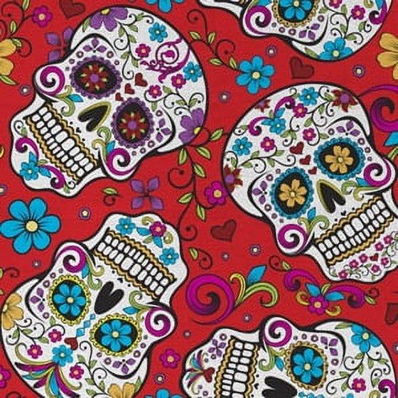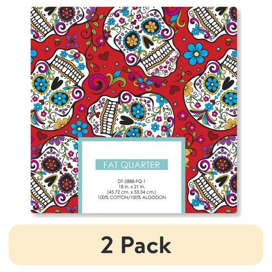 (2 pack) David Textiles 21" x 18" 100% Cotton Folkloric Skulls Precut Sewing & Craft Fabric, Red