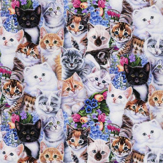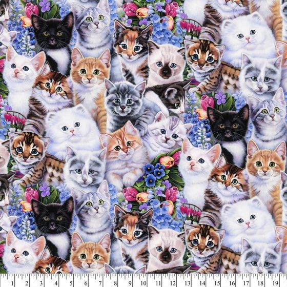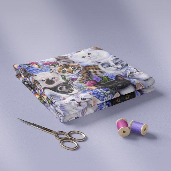 David Textiles 21" x 18" 100% Cotton Kittens & Flowers Precut Sewing & Craft Fabric, Multi-color