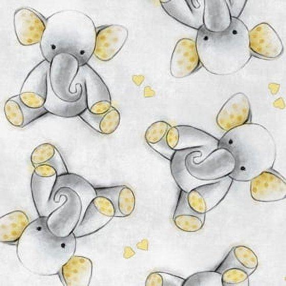 (3 pack) David Textiles 21" x 18" 100% Cotton Sleepytime Elephants Precut Sewing & Craft Fabric, Gray