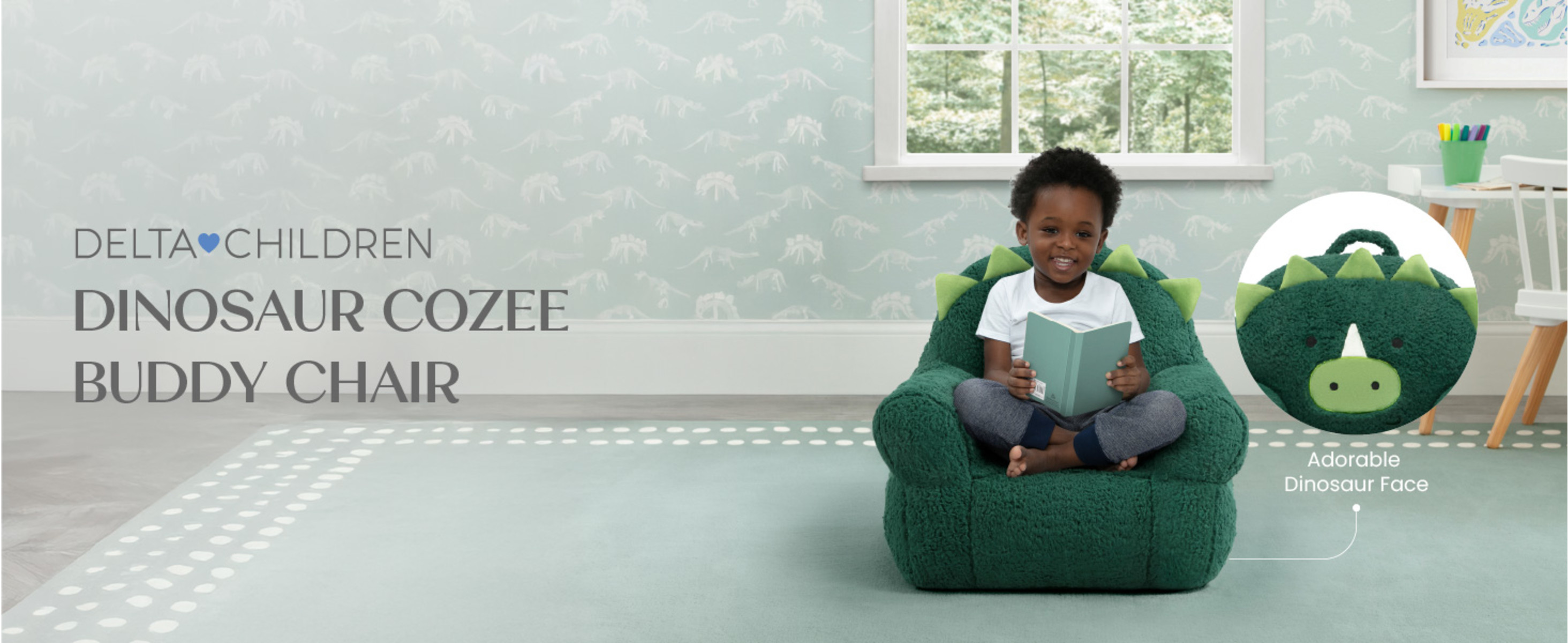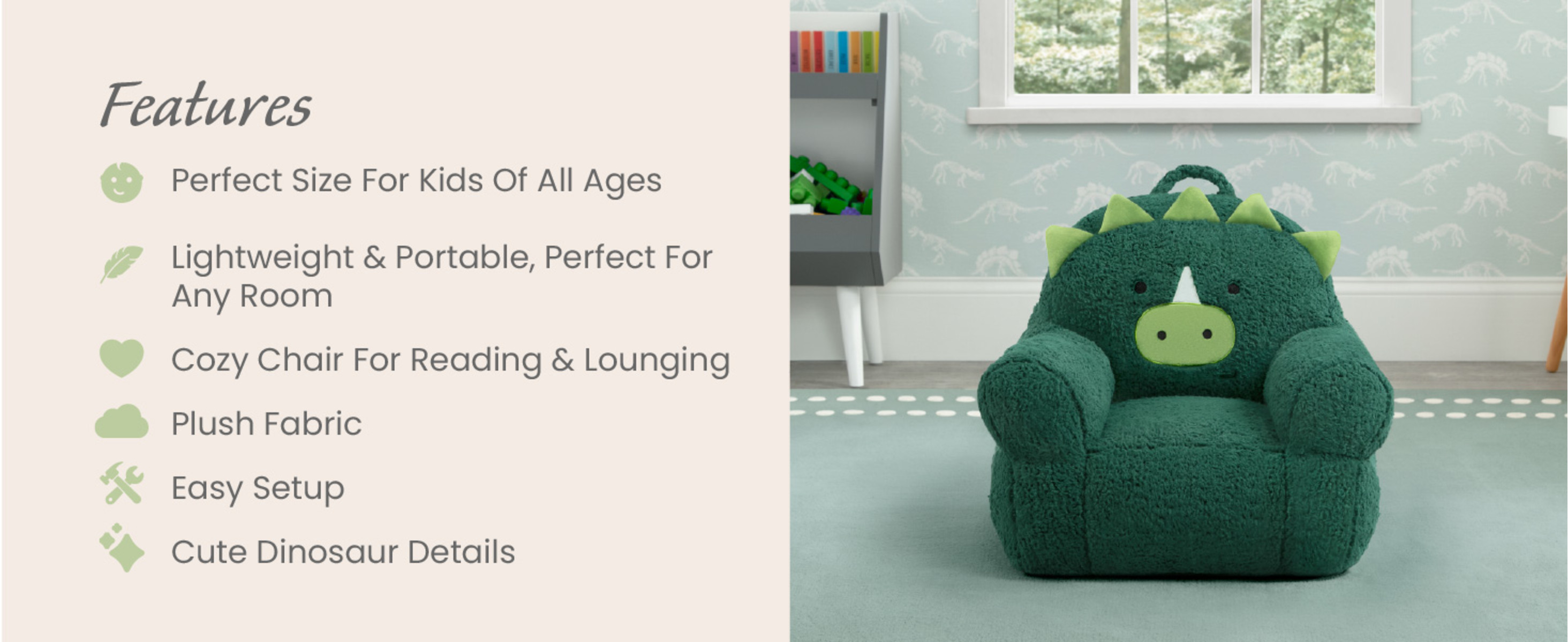 - FOR DINOSAUR FANS: This plush chair features cool dinosaur details | This chair will be your child’s cuddly companion for reading, relaxing or snuggling