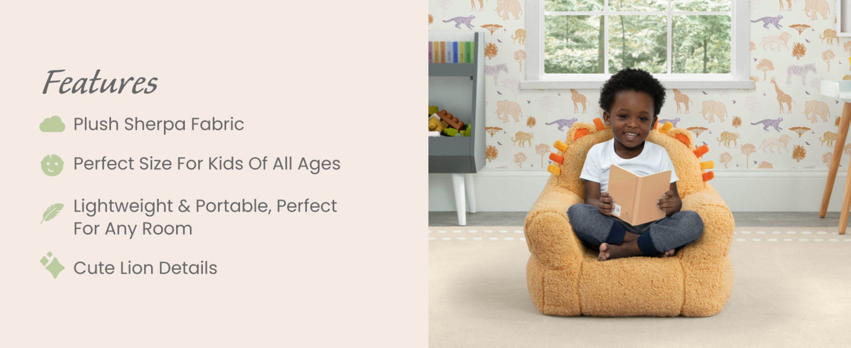 - FOR LION FANS: This plush chair features cool lion details | This chair will be your child’s cuddly companion for reading, relaxing or snuggling