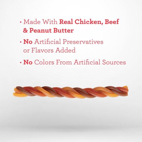Dreambone Triple Flavor Twisties Sticks, Rawhide-Free Dog Chews with Real Peanut Butter, 25 Count