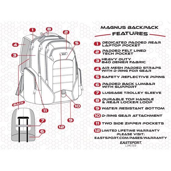 Eastsport Unisex 19" Limited Magnus Tech Backpack, Black/Red