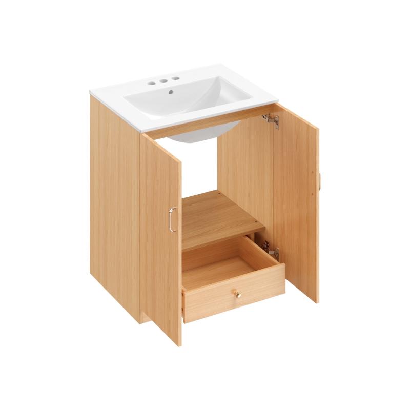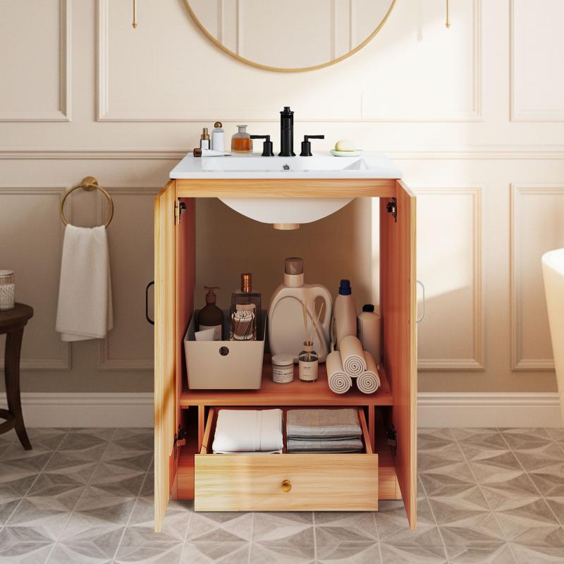 EDX 24-inch Bathroom Vanity Cabinet, Freestanding Modern Cabinet Vanity with Sink, 2 Soft-Closing Doors ,Natural Wood