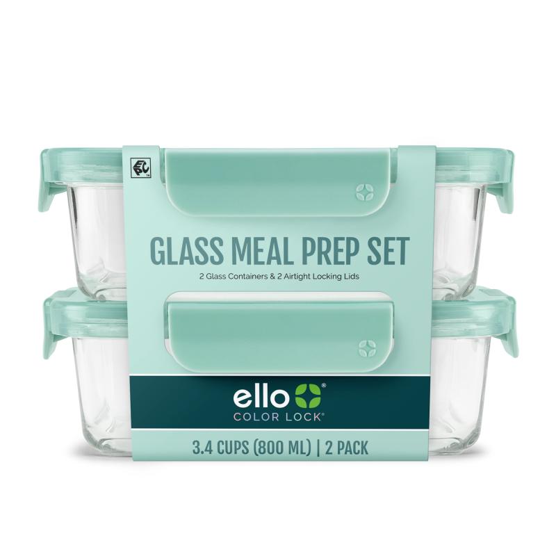Ello Color Lock 3.4 Cup 2 Pack Glass Meal Prep Containers with Locking Lids