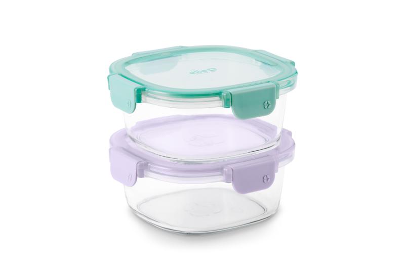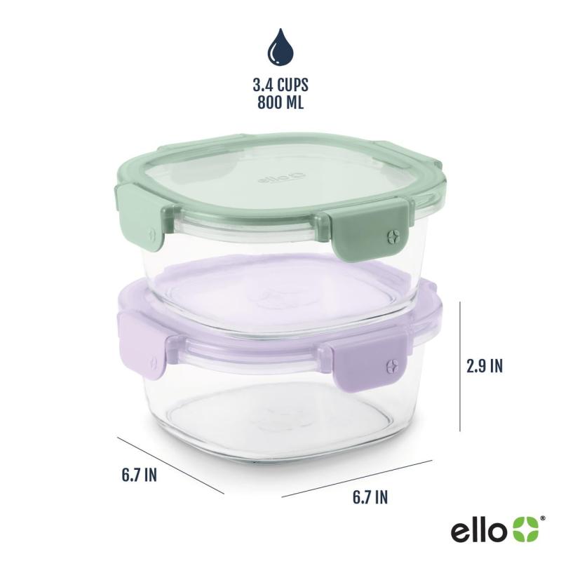 Ello Color Lock 3.4 Cup 2pk Round Glass Meal Prep Containers