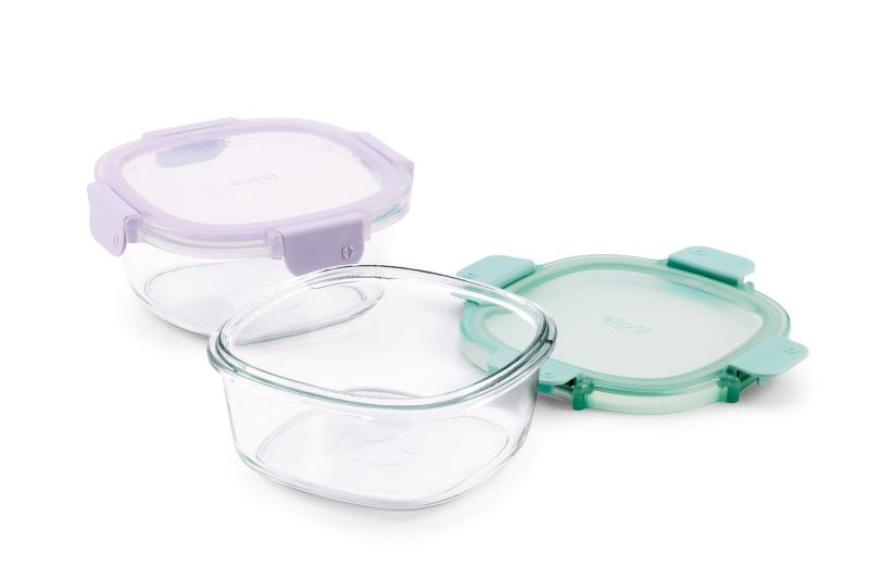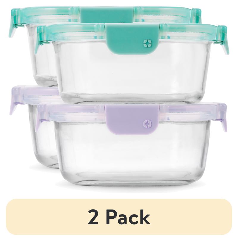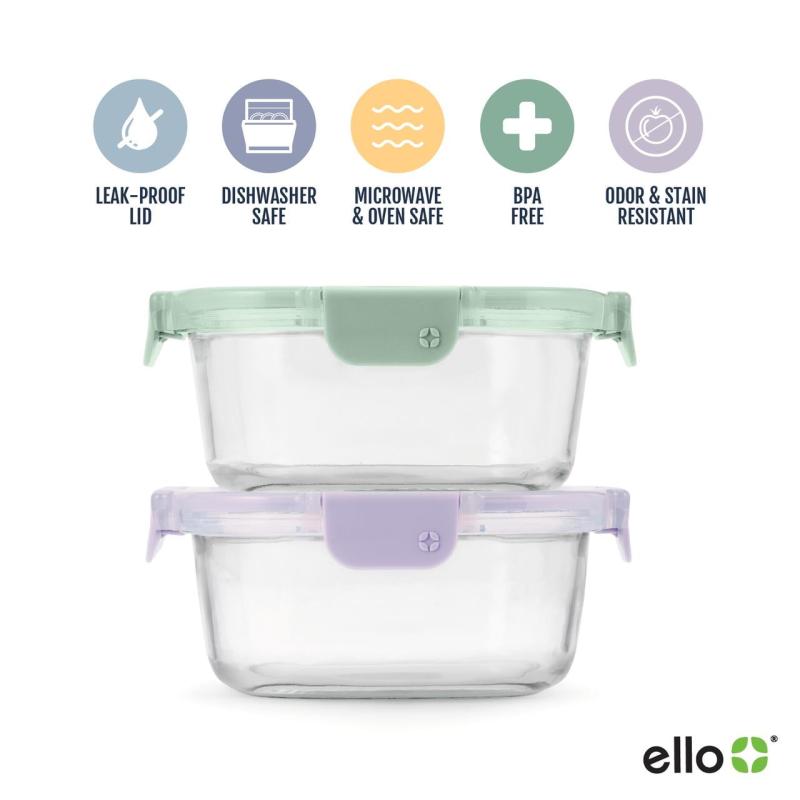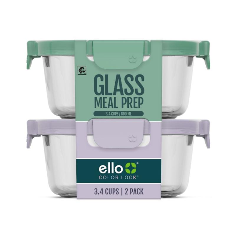 (2 pack) Ello Color Lock 3.4 Cup 2pk Round Glass Meal Prep Containers