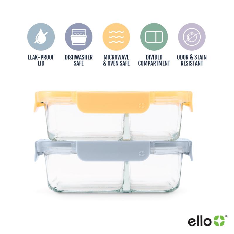 Ello Color Lock 3.4Cup 4PC, 2 Pack Glass Meal Prep Sets Leak-Proof Glass Food Storage Containers with Airtight BPA-Free Plastic Lids, Dishwasher, Microwave, and Freezer Safe