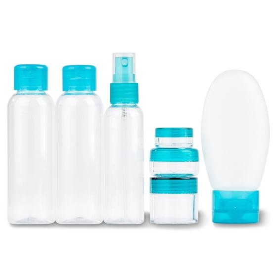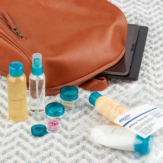 Next time you take a trip, be sure to pack the Equate 8-Piece Travel Kit. This kit includes two flip top bottles, one fingertip spray bottle, one dispensing tube, three jars, and one reusable bag. Each container falls within the TSA's liquid rules requirements, so this kit is ideal for air travel. It's also great to take with you to the spa, the gym, to school, or on an extended camping trip. This kit stores easily in a desk, purse, backpack, or travel bag so you can take it anywhere. Included in the kit are adhesive labels so you can identify all the contents. Stay organized and prepared with the convenient Equate 8-Piece Travel Kit.