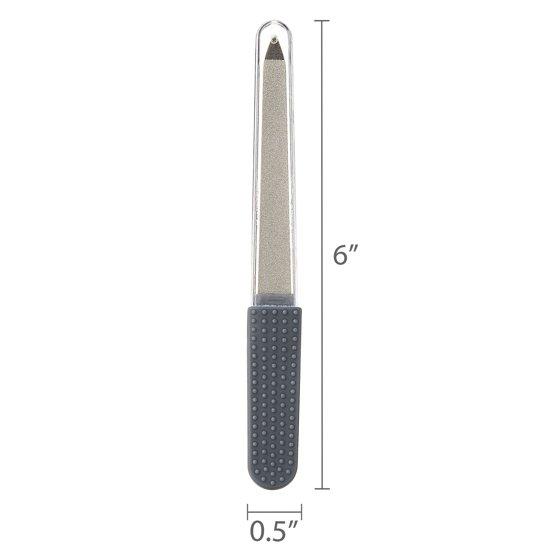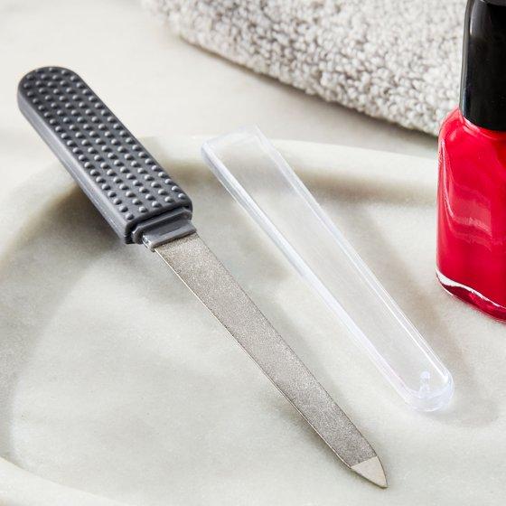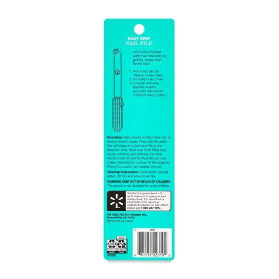 The Equate Non-Slip Easy Grip Fingernail File is a precision-crafted nail care tool designed to provide a professional-grade finish. It features two distinct textures: one side shapes your nails, while the other smooths them. The clever design also allows the tip to be used gently for cleaning under the nails. Unique non-slip handle inserts provide maximum comfort and control during use. Achieve meticulous results with the Equate Non-Slip Easy Grip Fingernail File.