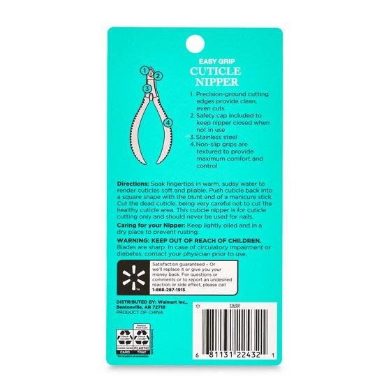 The Equate Stainless Steel Non-Slip Easy Grip Cuticle Nipper is designed to bring salon-quality care right into your home. Made with sharp, precision-ground cutting edges, it trims cuticles cleanly and evenly without tugging. The durable stainless steel construction ensures lasting performance, making it a reliable part of your manicure and pedicure routine. Use it after soaking your hands or feet in warm water to soften cuticles and prepare nails for polish. Textured, non-slip grips provide steady control and added comfort, so grooming feels simple and stress free. Keep your nails looking polished and healthy with the Equate Stainless Steel Non-Slip Easy Grip Cuticle Nipper.
