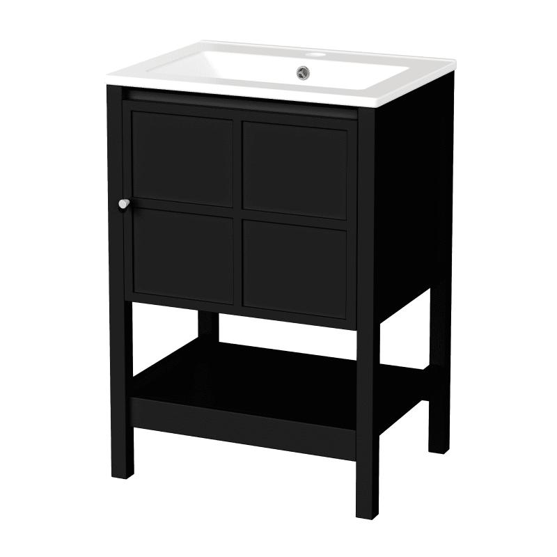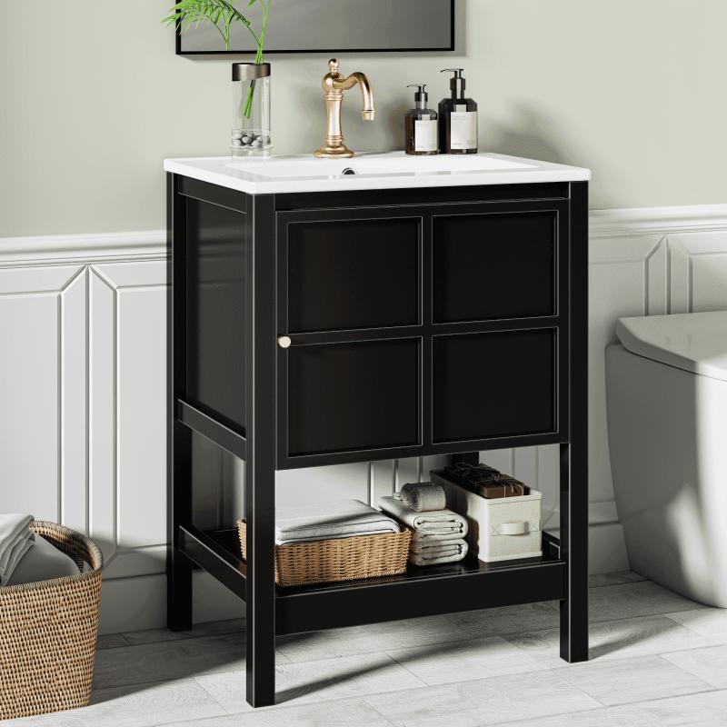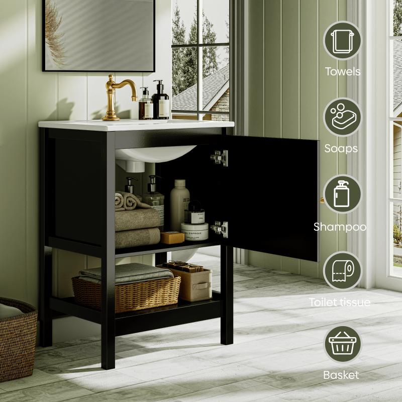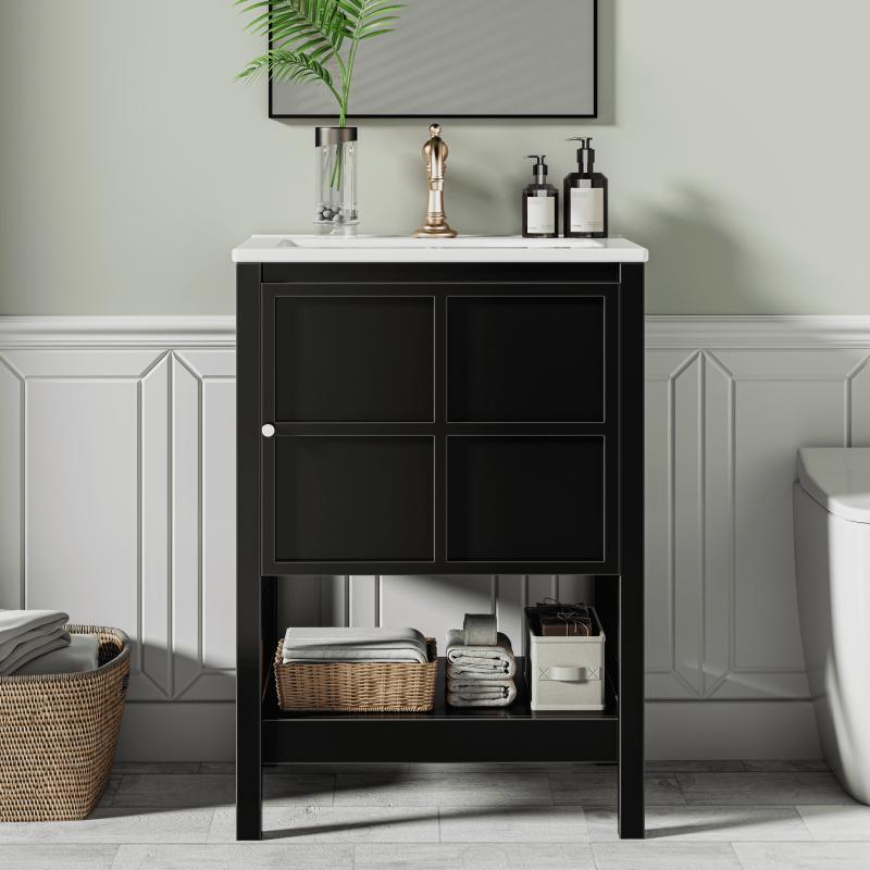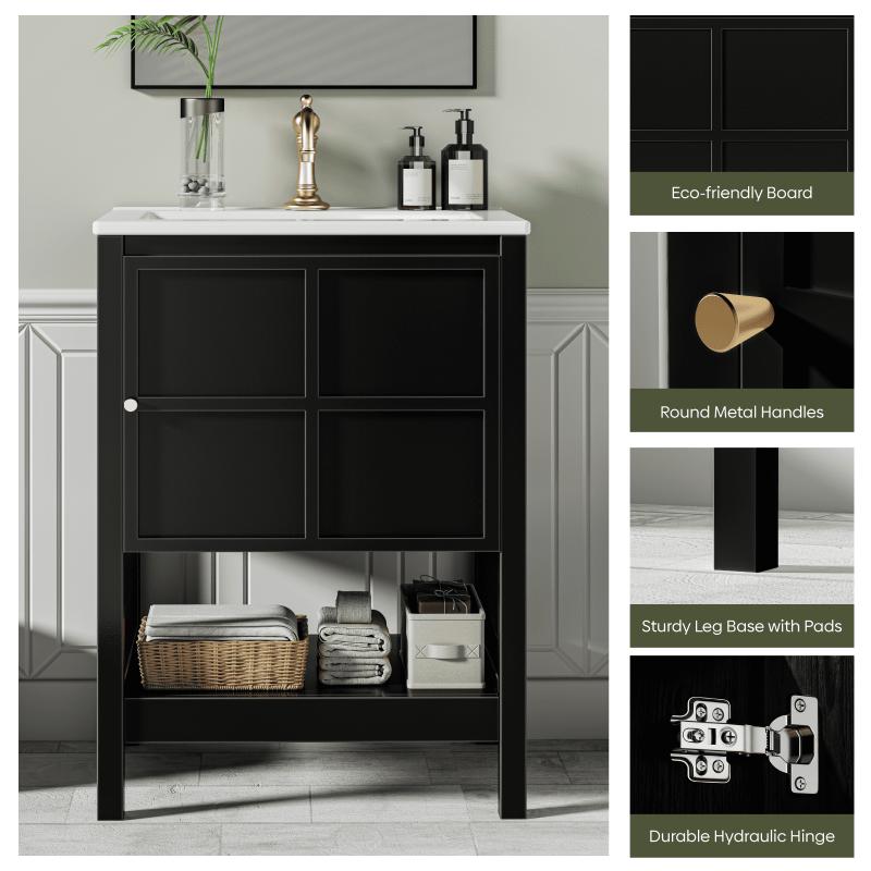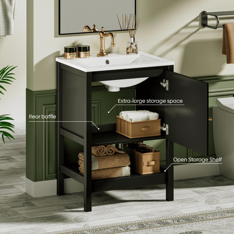 EVOKEDEN 24" Bathroom Vanity with Sink, Small Farmhouse Freestanding Bathroom Cabinet Combo Set, Soft Closing Door and Open Storage Shelf, Black