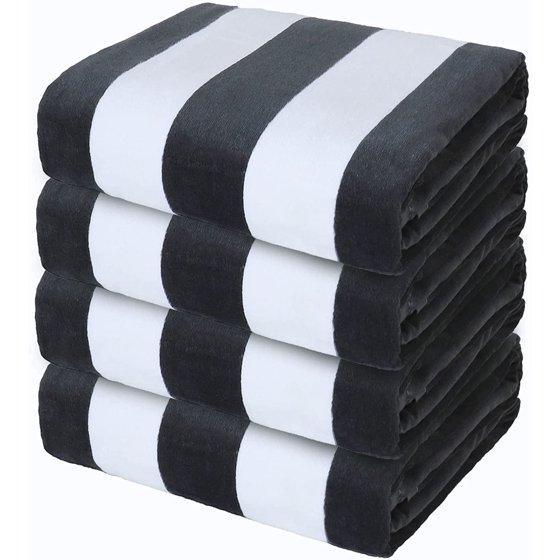 Exclusivo Mezcla 4-Pack Cotton Oversized 35"x70" Cabana Stripe Beach Towels, Super Absorbent Soft Plush Pool Towel, Bath Towel (Charcoal Grey)