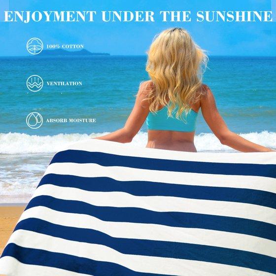 - Eye Catching- Our cotton beach towel features Retro style, cabana stripes in bright color are printed on the right side, simple but classic.