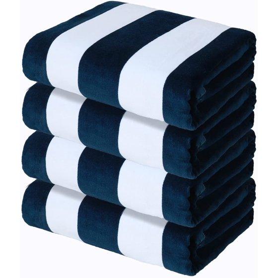 Exclusivo Mezcla 4-Pack Cotton Oversized 35"x70" Cabana Stripe Beach Towels, Super Absorbent Soft Plush Pool Towel, Bath Towel (Dark Navy)