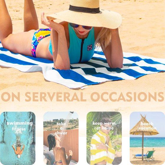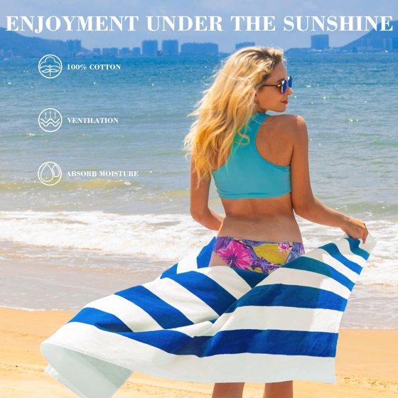 - Eye Catching- Our cotton beach towel features Retro style, cabana stripes in bright color are printed on the right side, simple but classic.