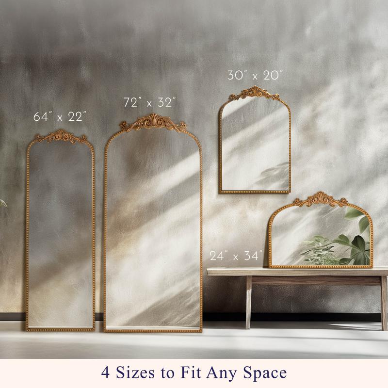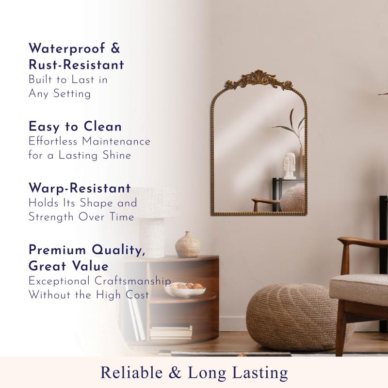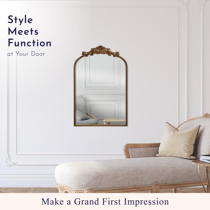 Filigree 20x30 Gold Arched Large Wall Mirror for Bathroom or Living Room