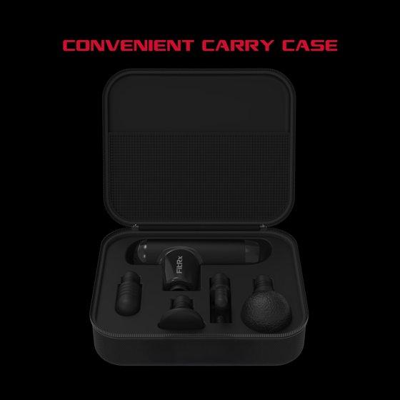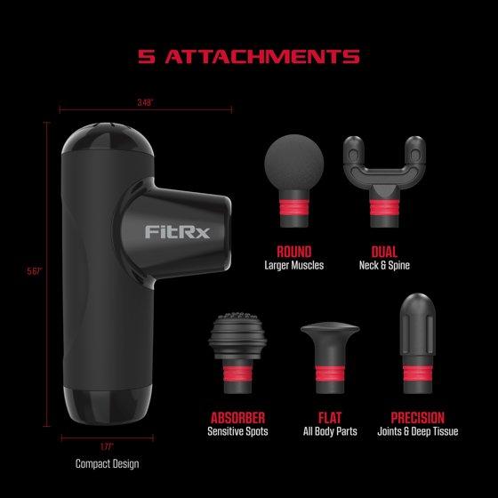 The FitRx Mini Pro Neck and Back Massager is your new portable solution for personal fitness, relaxation, and physical therapy needs. This rechargeable massage gun uses percussive frequencies to help speed up muscle recovery. Say goodbye to muscle pain and tension, improve blood circulation, and reduce inflammation! From large muscle groups to those hard-to-reach areas, this massager comes with four head attachments that target specific areas on your body. With impressive speeds of up to 2800 rpm in a compact design, the FitRx Max Mini Massager is the perfect travel tool for quick and effective recovery as an arms, shoulder, leg massager. Even better, a USB-C rechargeable battery that can last up to 6.5 hours, and an included hard carrying case keeps you on the go. Professional athletes, gym rats, office workers, and more -- virtually anyone can enjoy the benefits of a massage gun. Relax, relieve, and recover with FitRx.