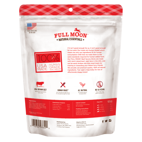 (4 pack) Full Moon Natural Essentials Beef Sticks Dog Treats, 22oz