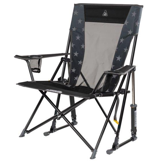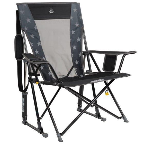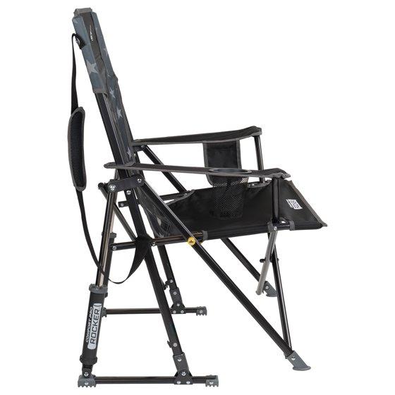 GCI Outdoor Comfort Pro Rocker Foldable Rocking Camp Chair with Mesh Backrest, Americana Greyscale