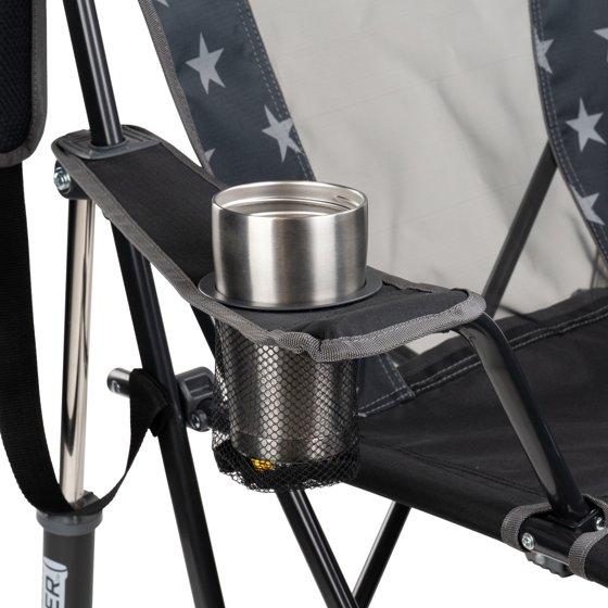 The GCI Outdoor Comfort Pro Rocker is your ticket to ultimate relaxation. Featuring a taller backrest and laid-back seating angle, along with innovative Spring-Action Rocking Technology for a smooth rocking motion, it delivers the kind of comfort that makes you forget you're outdoors. The sturdy steel frame supports up to 250 lbs. and includes a shoulder carry strap for easy transport wherever adventure leads you. On warm, sunny days, the breathable mesh backrest helps keep you cool and dry, providing the perfect seat for sideline cheering, pre-game tailgating, or backyard barbecuing. It also comes with a handy beverage holder for your favorite drink and a side pocket for quick access to photos, playlists or checking the score. When it’s time to head home, collapse the chair and secure it in a folded position with the attached closure tab for quick and simple pack up.