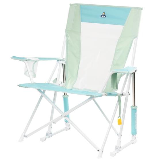 GCI Outdoor Comfort Pro Rocker Camping Chair with Mesh Backrest, Pastel Green Colorblock
