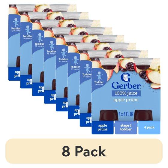(8 pack) Gerber Fruit Juice, Apple Prune, 4 fl oz Bottle (6 Pack)