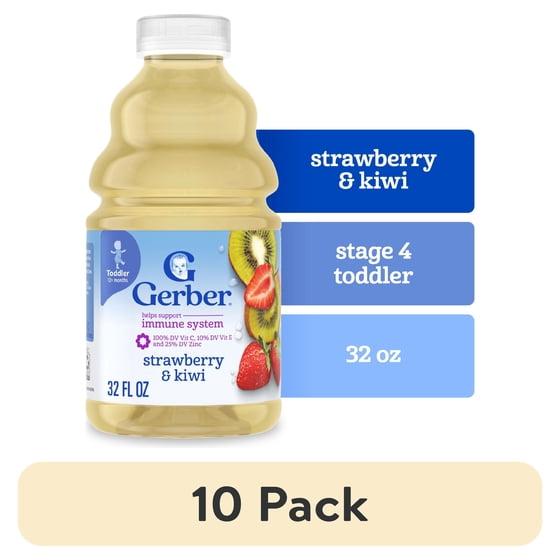 (10 pack) Gerber Fruit Splashers Toddler Juice Strawberry Kiwi, 32 fl oz Bottle