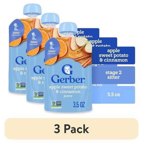 (3 pack) Gerber Stage 2 Baby Food, Apple Sweet Potato Cinnamon Puree Pouch 3.5 oz