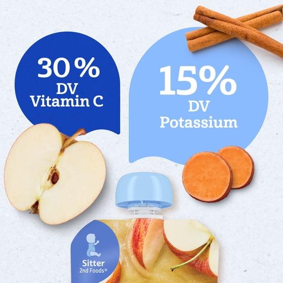 - NUTRITIOUS: This baby food fruit and veggie option has 30% of the daily value of vitamin C, 15% of the daily value of potassium and two servings* of fruit and veggie per pouch