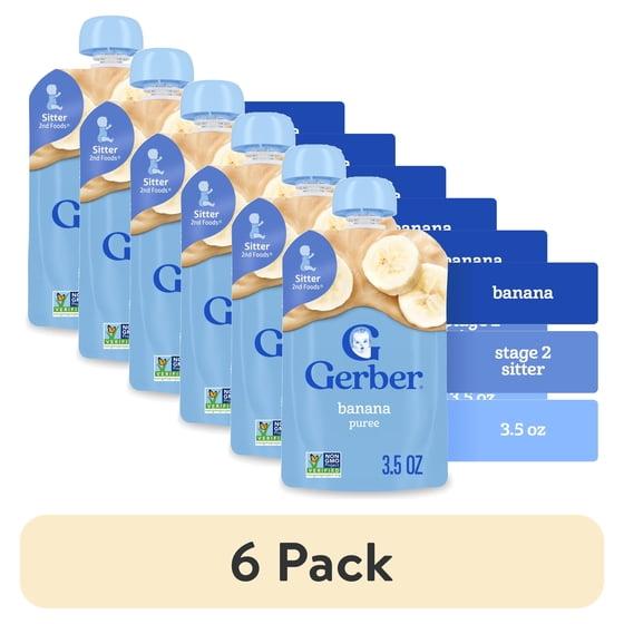 (6 pack) Gerber Stage 2 Baby Food, Banana Puree Pouch 3.5 oz
