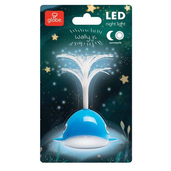 Globe Electric's Wally Jr Automatic Whale Plug-In Kids Night Light is perfect for a baby nursery, toddler's bedroom, or bathroom. It turns on at dusk and off at dawn so you'll always have a nice fun light when needed. Layered fiber optic strands spray out of the whale's head creating an amusing light for the animal lovers in your home. Staying cool to the touch you never have to worry about where you're placing your kids night light. Costing only pennies to operate, the long-lasting LED saves you time and energy and will be around for years to come for you and your family to enjoy. This item weighs 0.08 lbs.