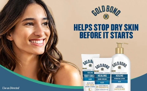 Dry, rough skin can feel uncomfortable. That’s why Gold Bond Healing Lotion, Hand Cream, and Foot Cream contain aloe to soothe and hydrate skin.